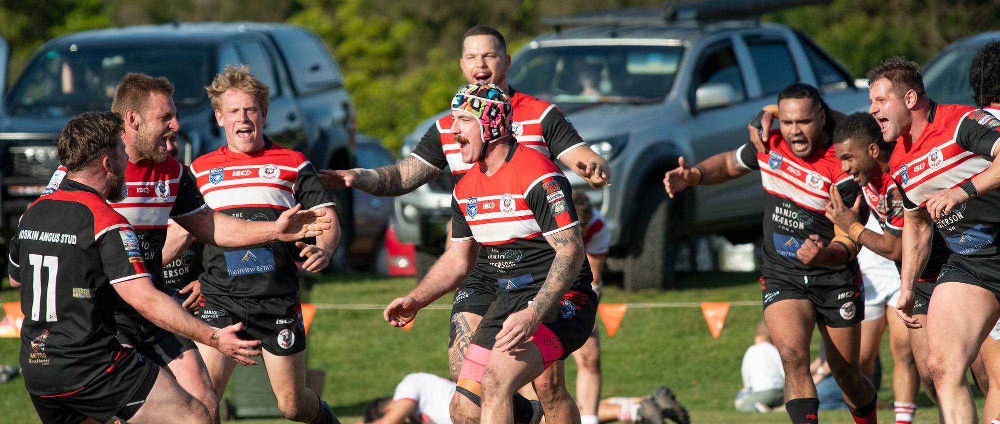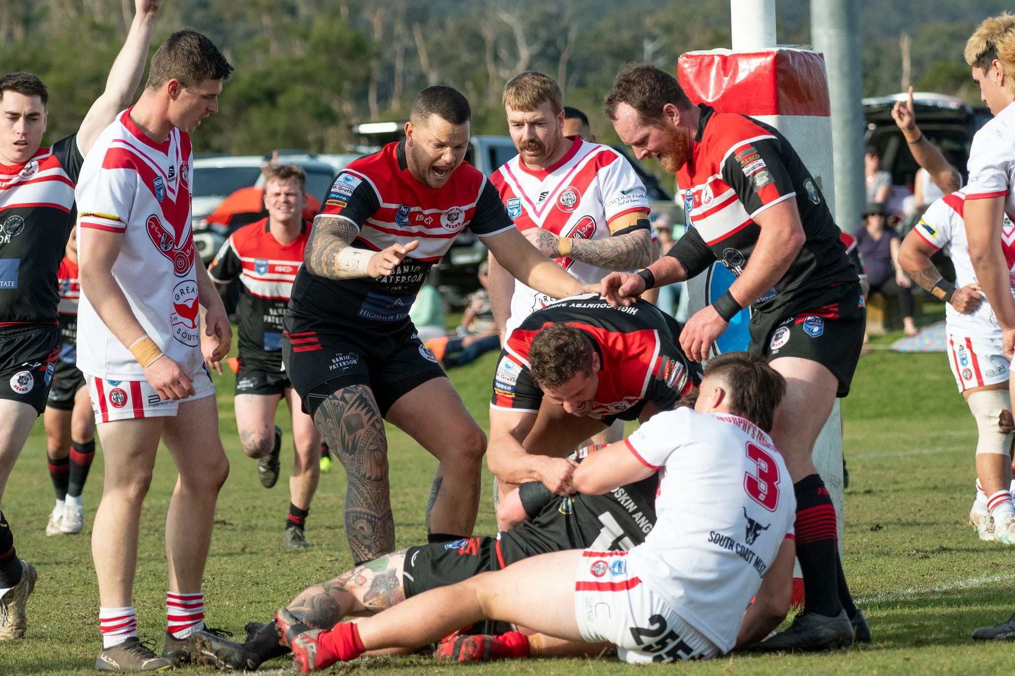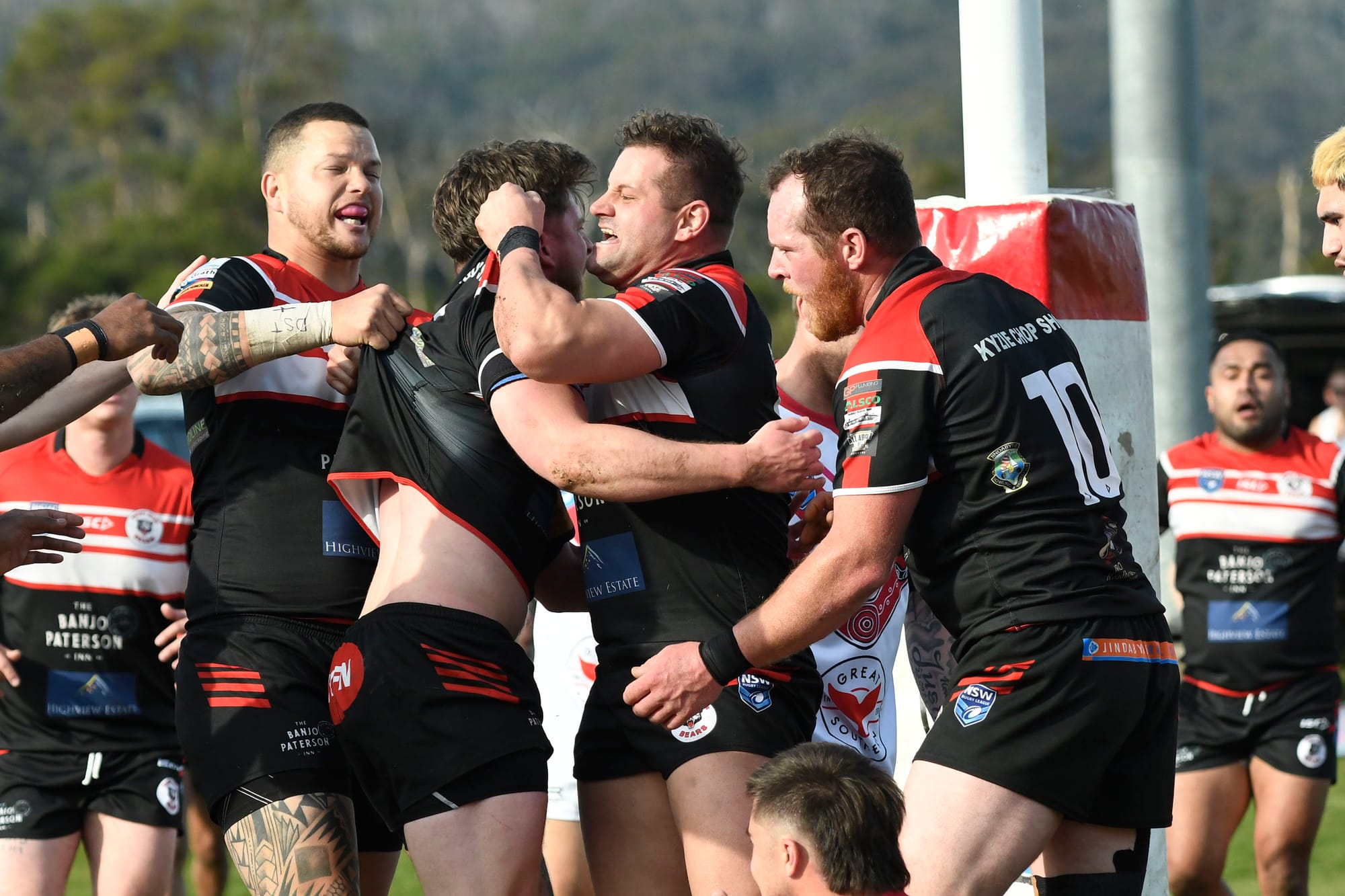 Laim Rankin changed the game for the Bears with his aggression to score in the 28th minute but not converted. The team celebrate as they sensed something special was happening. Bears 14-4.