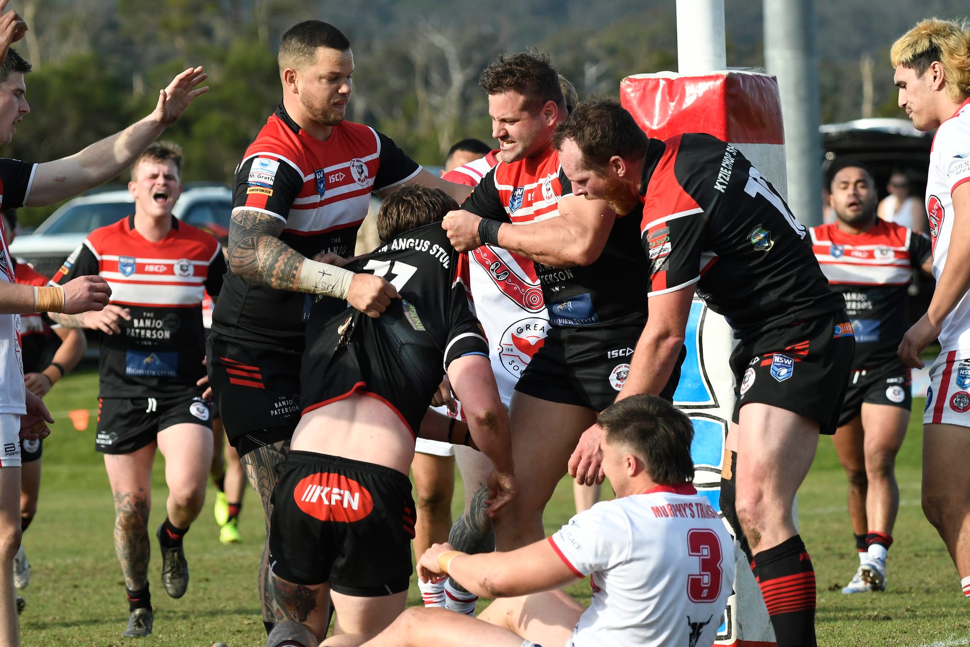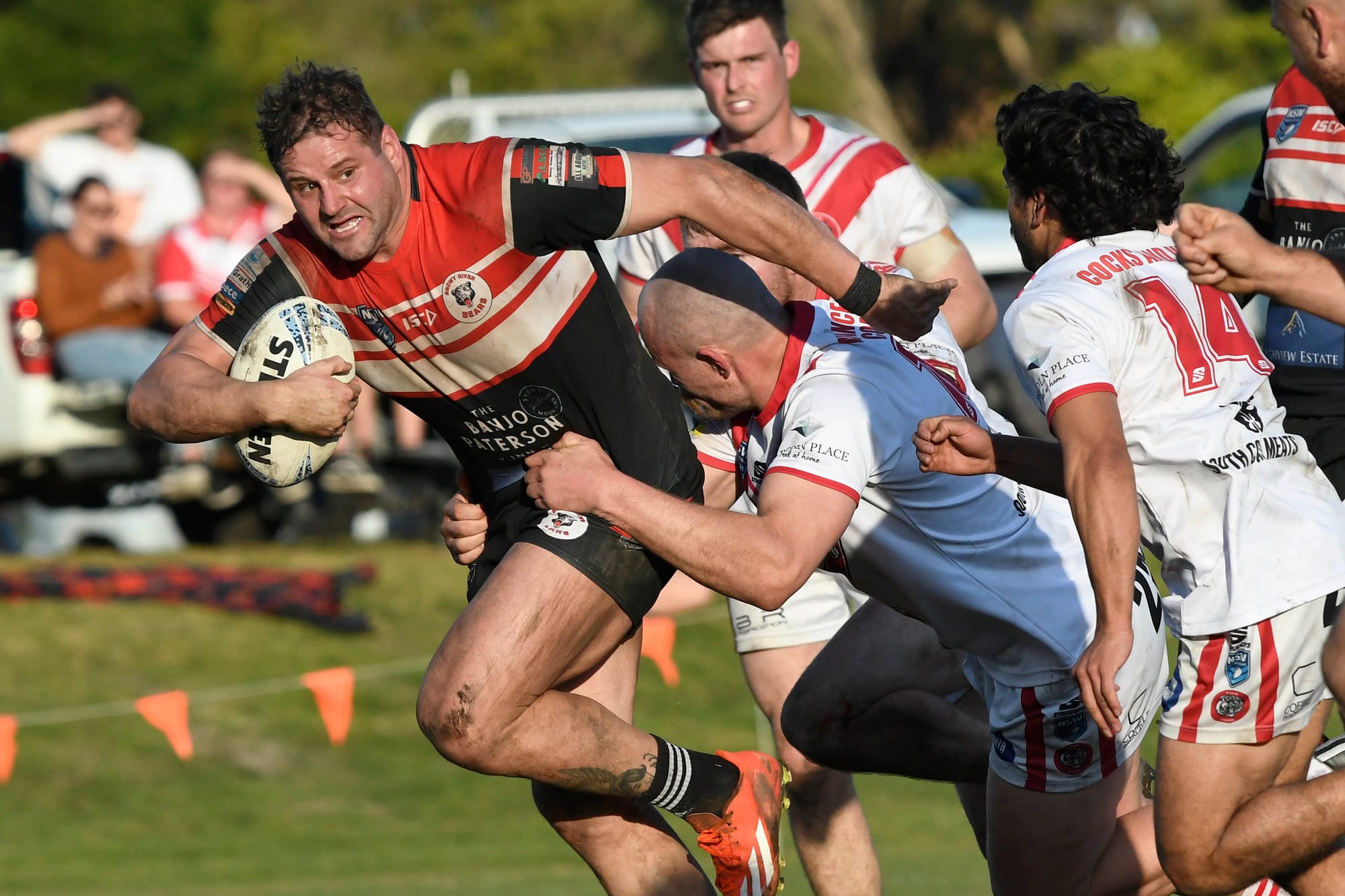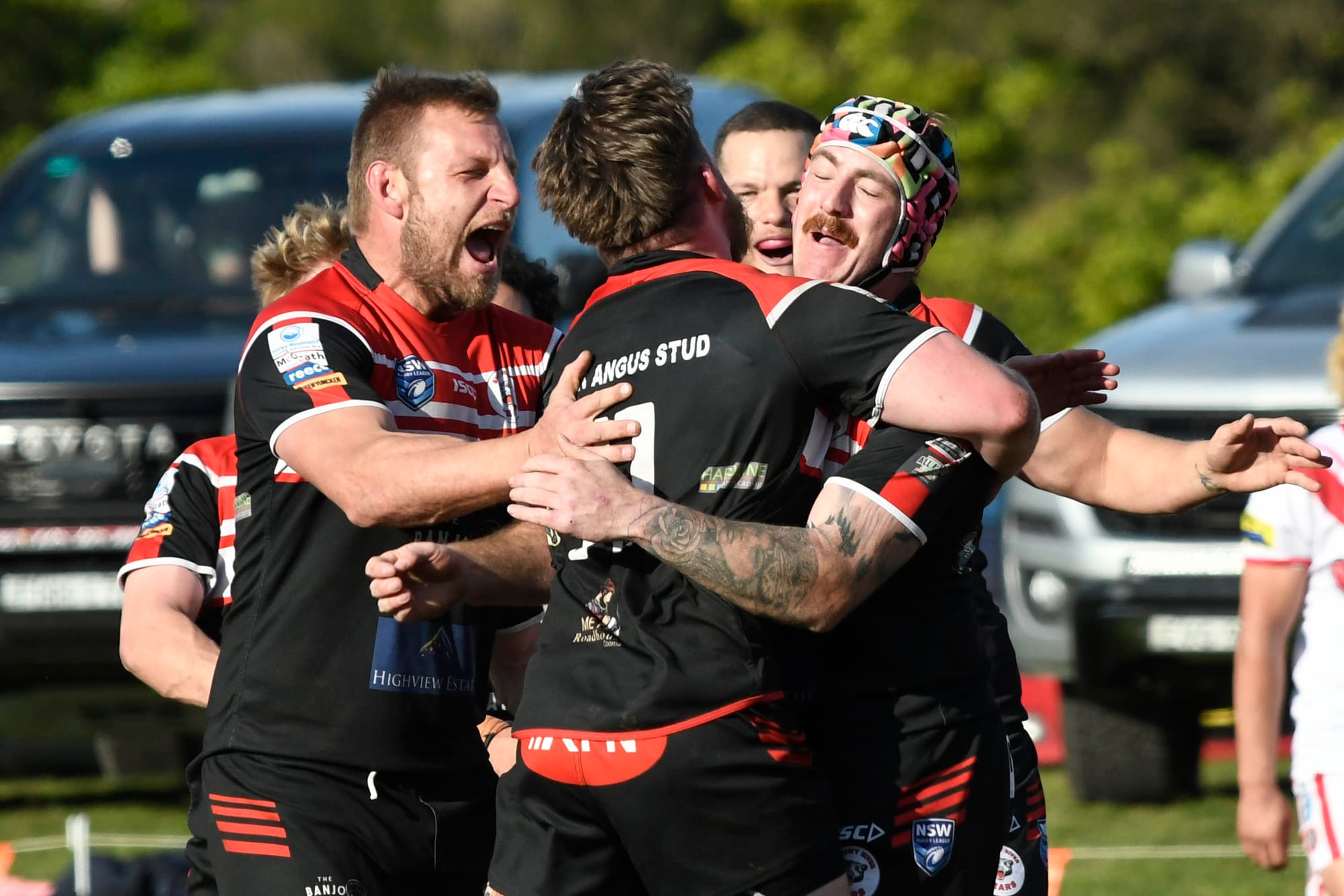 Laim Rankin changed the game for the Bears with his aggression to score in the 28th minute but not converted. The team celebrate as they sensed something special was happening. Bears 14-4.