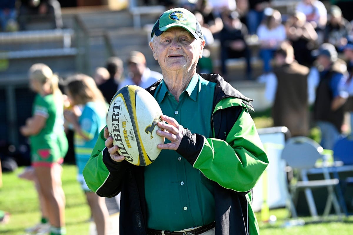 The Bushpigs started their day with the game ball handed to them from their founding patron Harry Cummins (pictured below), who was celebrating his 90th birthday.