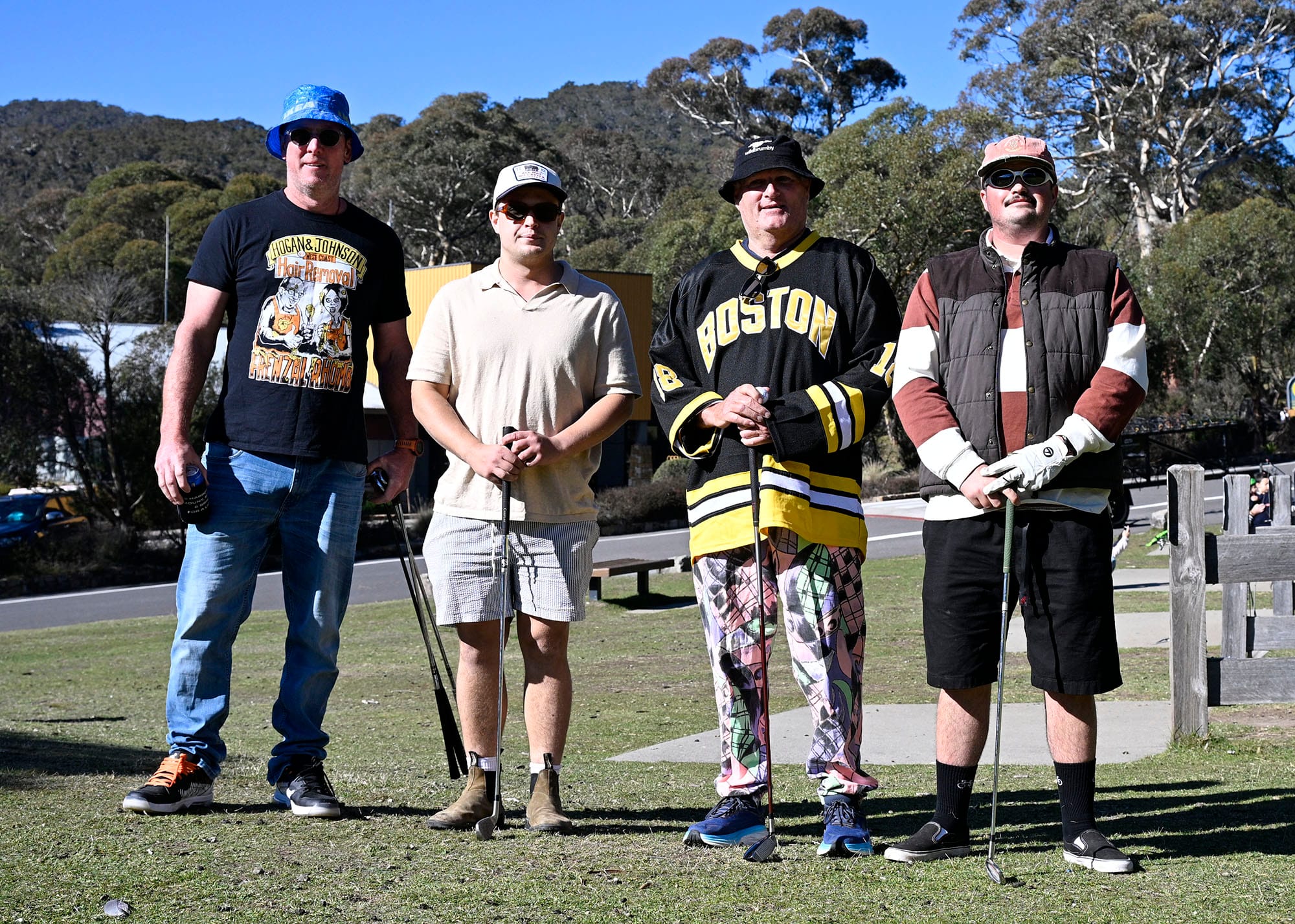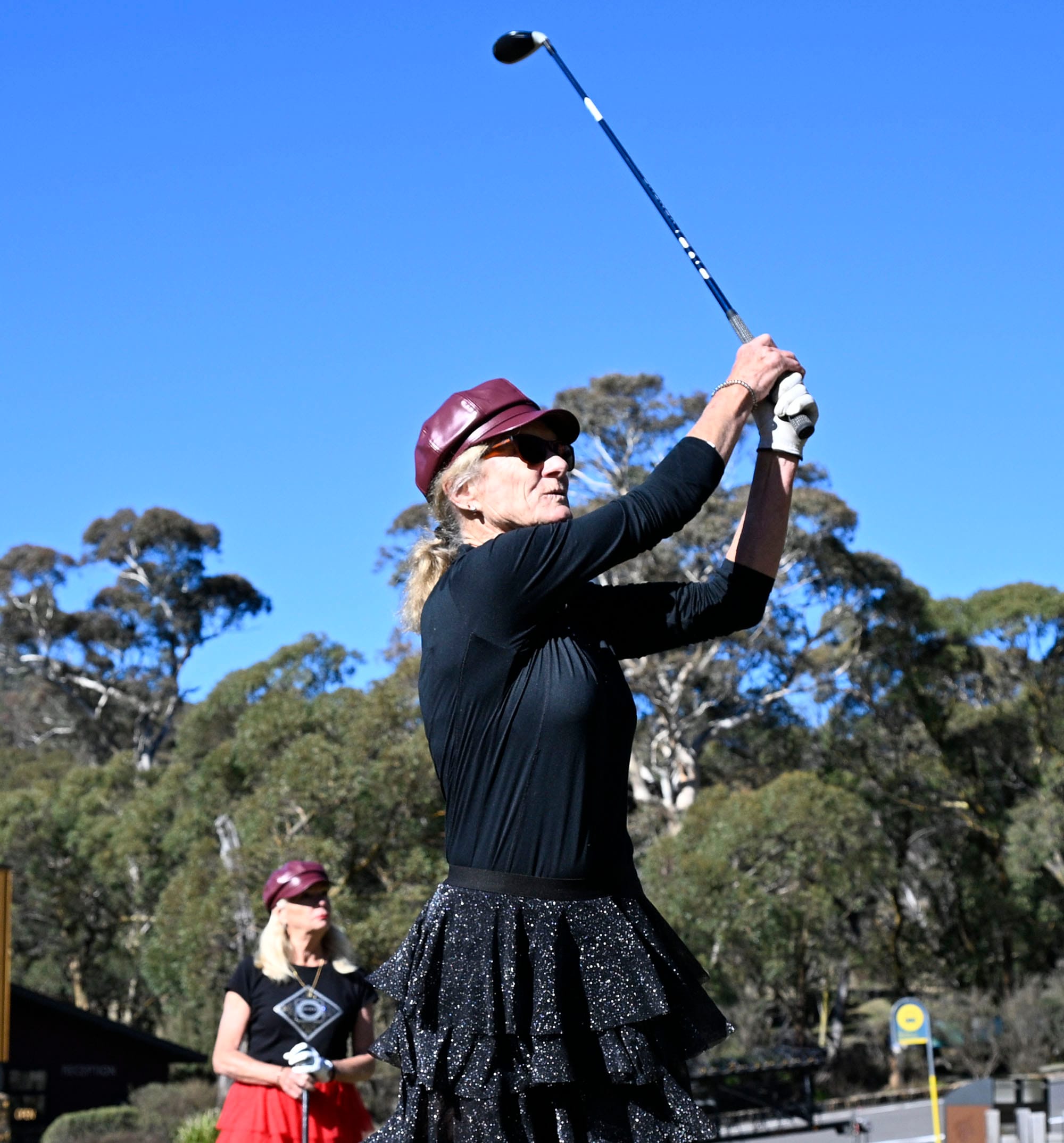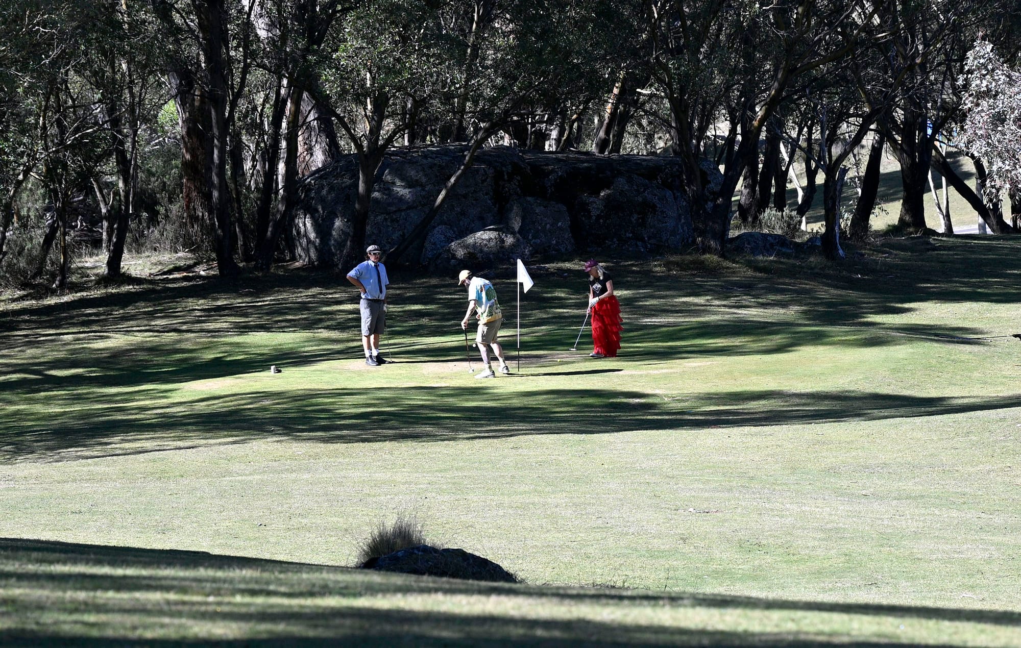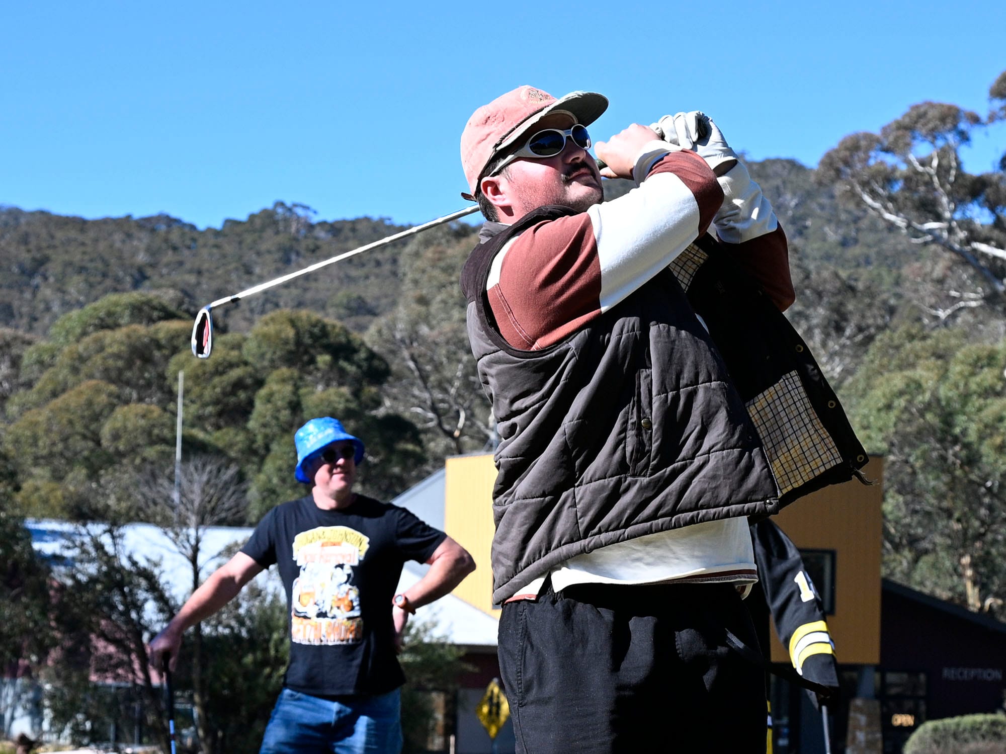 The par-3 Lake Crackenback Resort course was a mix of golfing abilities and the colours of impressive outfits, but golf was secondary for 40 participants, with fun as the main objective.