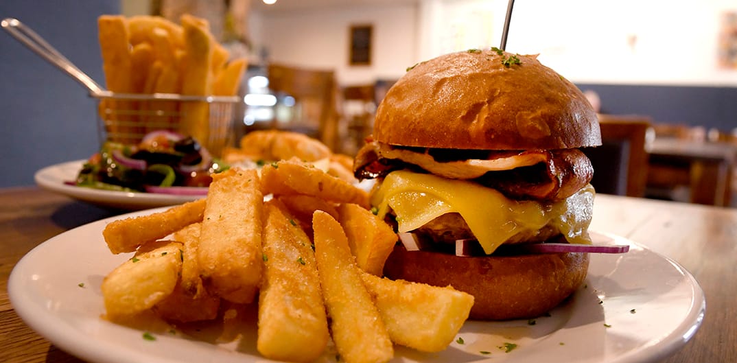 The eggs benedict are superb with either salmon or bacon and tasty hollandaise sauce or try one of the scrumptious burgers. For a lighter meal the fish and chips are ideal and the for the kids choose from the Little Duds menu.