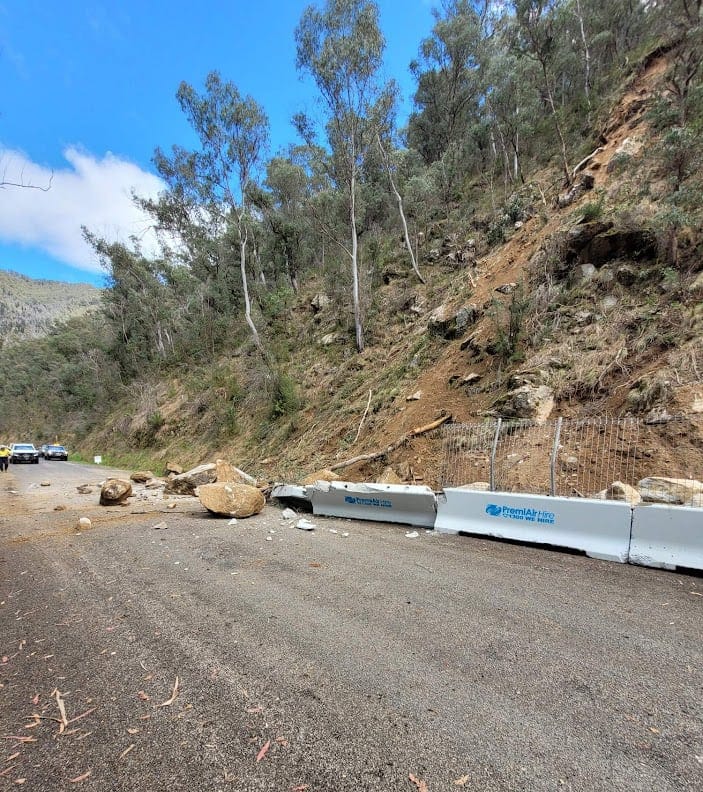Concrete barriers were installed on Thursday in anticipation of the road opening. As this work was completed a fresh rockfall has come down and crushed a section of the barriers. An additional two rock falls occurred at separate sites which NPWS assume were triggered by the recent rain (despite them occurring at least 12 hours after the rain had ceased).