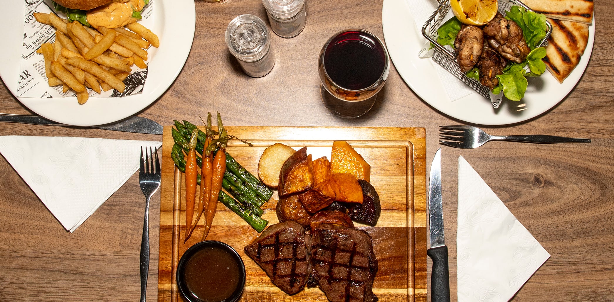 Try the Szechuan squid for lunch or a steak burger. The house curry is superb for dinner, the porterhouse steak is popular, Sunday night is roast night, great kids’ options and members’ discount.