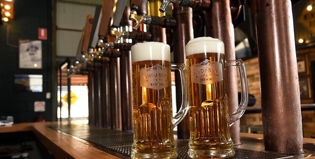 • Jindabyne Brewing is popular for not only for their fine beer choices, but also some of the tastiest dishes in town, from schnitzels to the ever-popular tantalising lamb and calamari skewers.