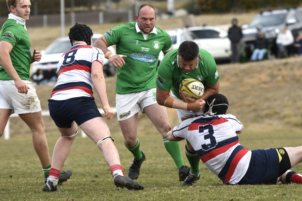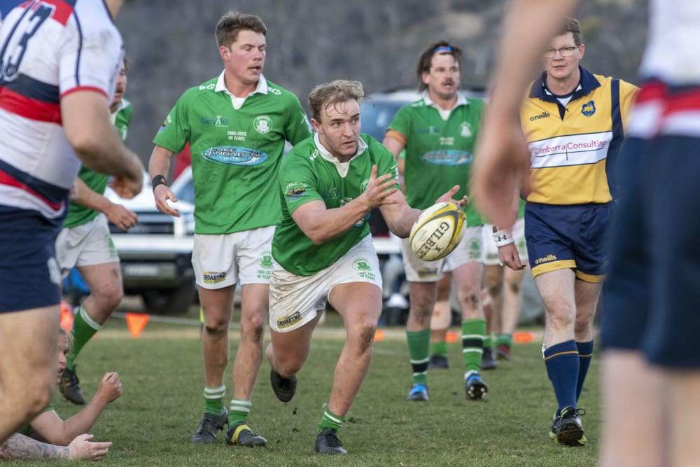 After scoring in the corner and missing the conversion, ADFA were allowed a second attempt at the kick after the referee red carded a Jindabyne spectator on the far touch line. She had encroached inside the roped area and obviously offered a stern opinion to the kicker. It could have been costly for the home side, but the second kick also missed.