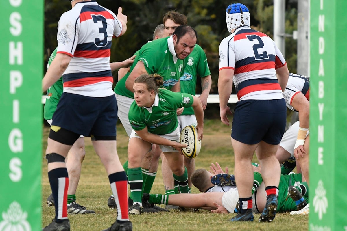 After scoring in the corner and missing the conversion, ADFA were allowed a second attempt at the kick after the referee red carded a Jindabyne spectator on the far touch line. She had encroached inside the roped area and obviously offered a stern opinion to the kicker. It could have been costly for the home side, but the second kick also missed.
