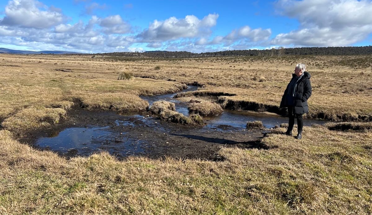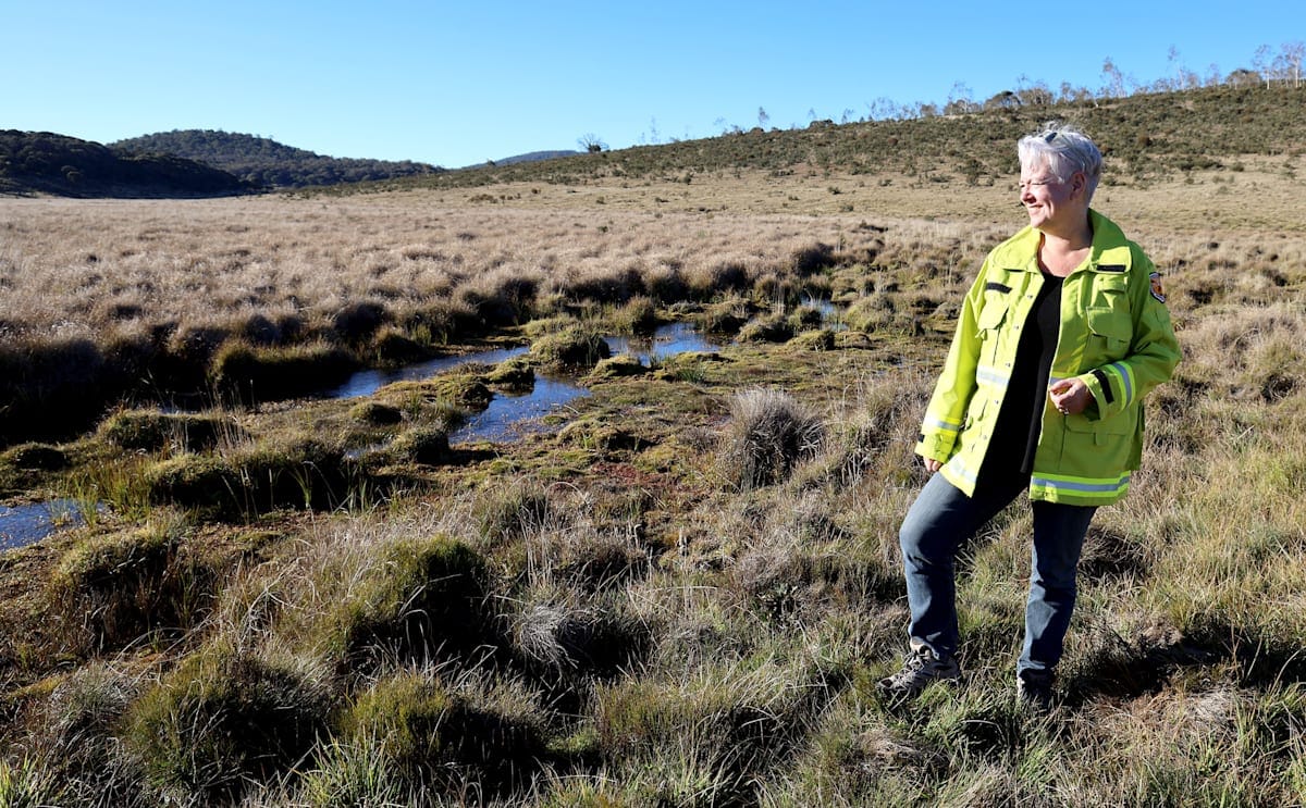 PHOTOS: Minister for the Environment Penny Sharpe at Sally Tree Creek, on Currango Plain, in northern Kosciuszko National Park above in early May 2025, and the same spot below in July 2023.