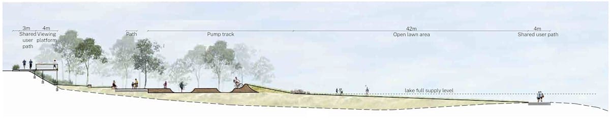 The design will take into consideration the varying lake levels, with all new work being built above the ‘lake full supply level’ to overcome any flooding issues on pathways as per recent years.