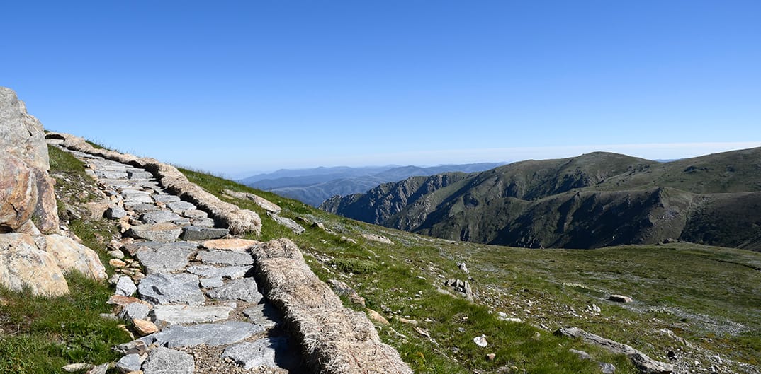 Starting at Charlotte Pass Lookout, wander down the hill and tackle the stepping stones to cross the Snowy River before the steady uphill climb, continuing along the track towards Mt Carruthers where you encounter magnificent views of Watsons Crags, the full vista of the Main Range, plus wildflowers.