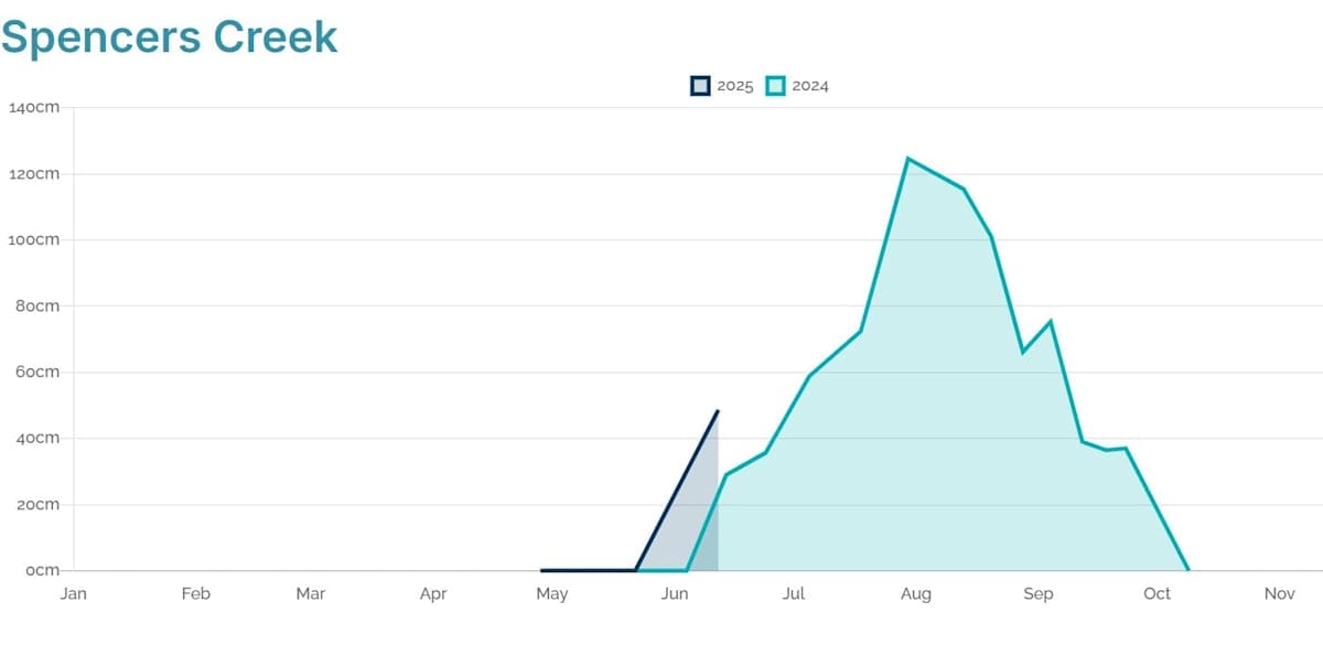 The Snowy Hydro Spencers Creek snow depth is currently 48.8cm (see below) which is a great improvement from this time last year.