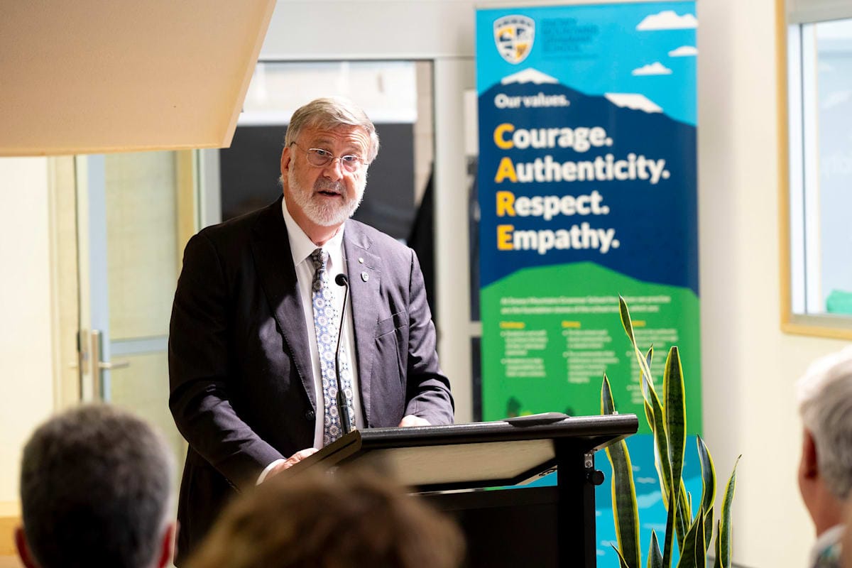 Chairman of Snowy Mountains Grammar School Michael Jones (OAM) welcomes the guests.