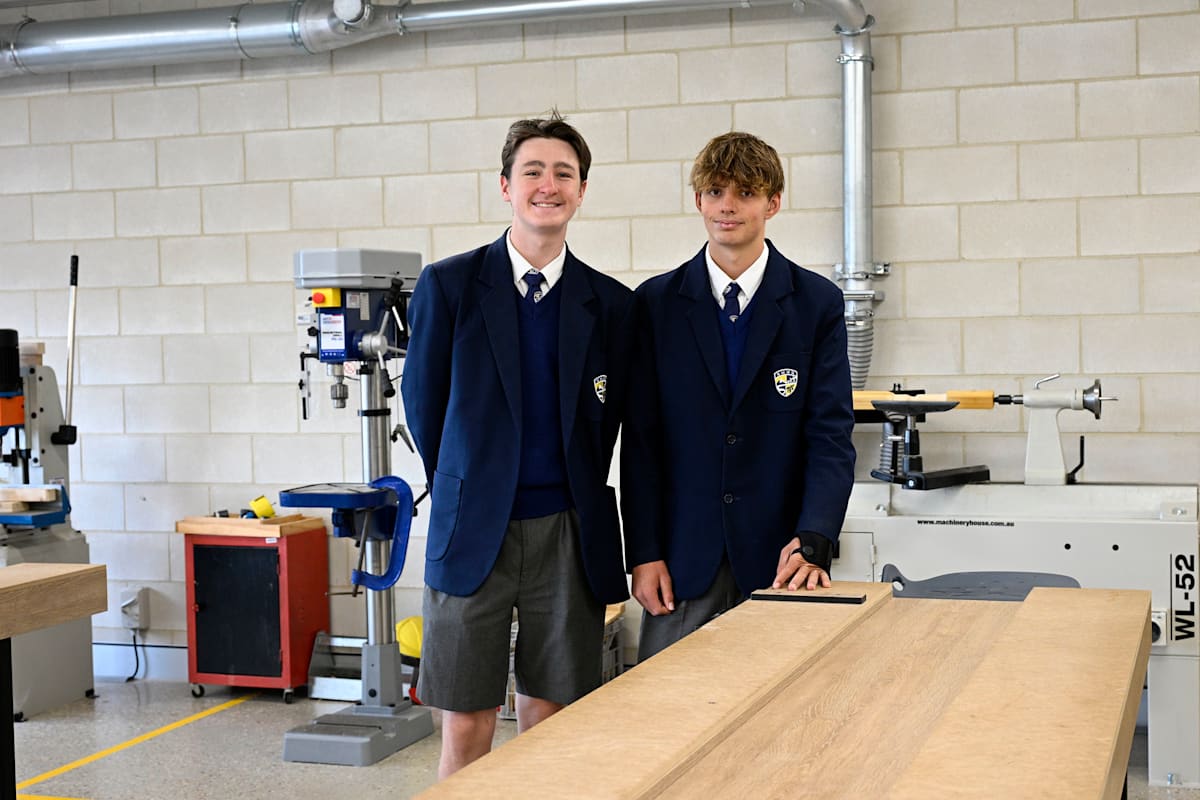 Students Chase Hughes and Blake Marshal in the fully equipped workshop area.