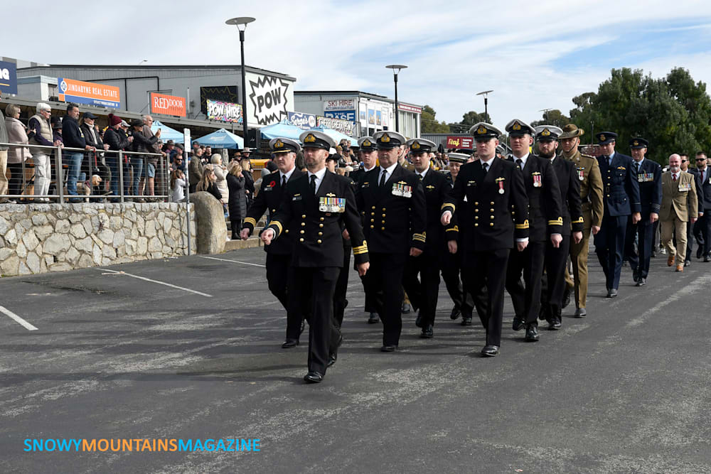 A large crowd gathered in Jindabyne for both the Anzac Day dawn and mid morning service and march.