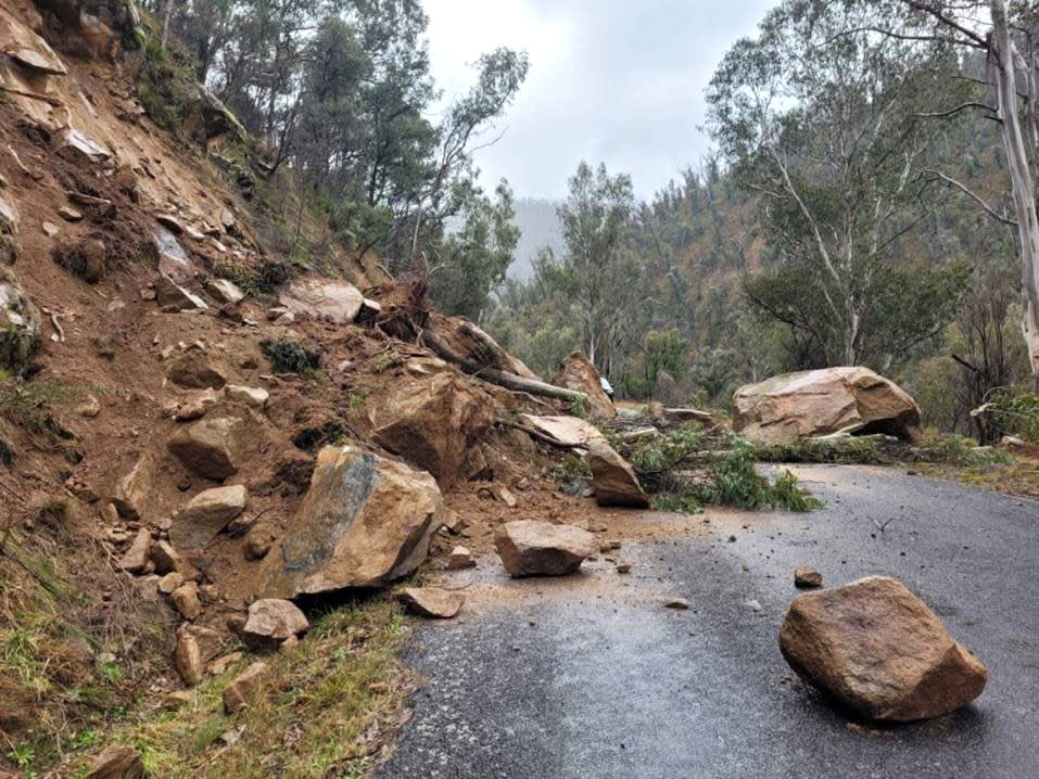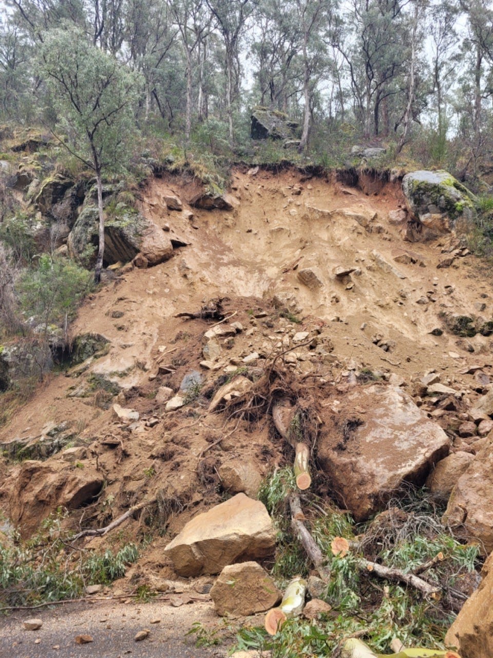 At this stage there is no timeframe for reopening until a geotechnical assessment can be undertaken. As shown in the photos there are some very large rocks in the embankment directly above the slip site that pose a risk.