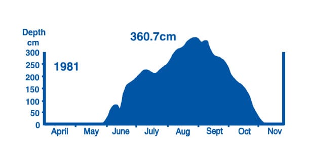 The NSW snow depth for each snow season dating back to 1982 are listed on the current snow depth chart (bottom of page). The huge 1981 season has fallen off the chart, so we have added it here just so you can see the biggest snow depth recorded at Spencers Creek in 1981. On the flip side, if you skied in 2006, that was the lowest depth recorded at 85.1cm.