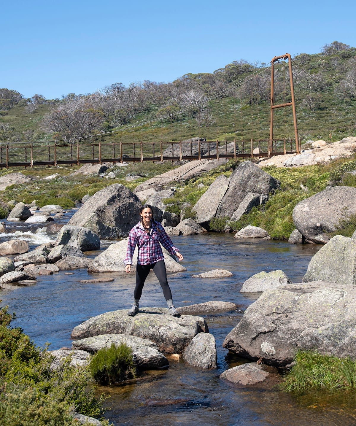 At first sight I am not sure what impresses more, the suspension bridge standing proud in the wilderness, or the wider upper reaches of the Snowy River and Spencers Creek waters merging.