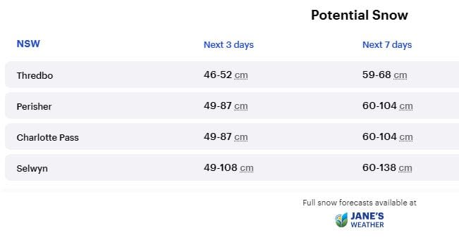 “This is the big one - a metre of snow over about four to five days is highly likely for many alpine resorts,” said Jane Bunn in her latest blog.