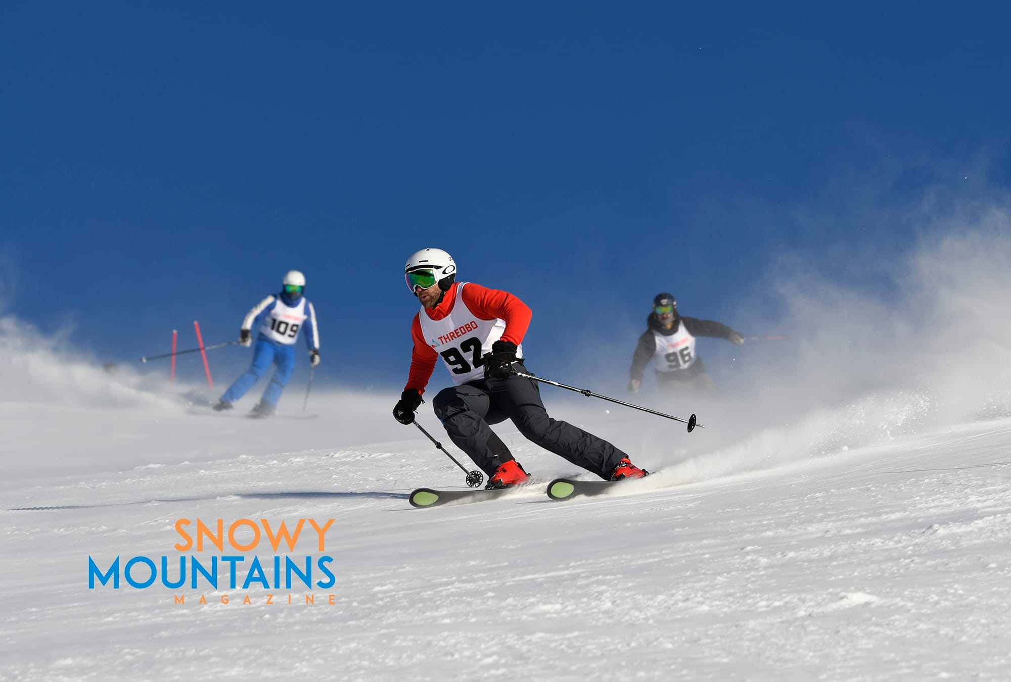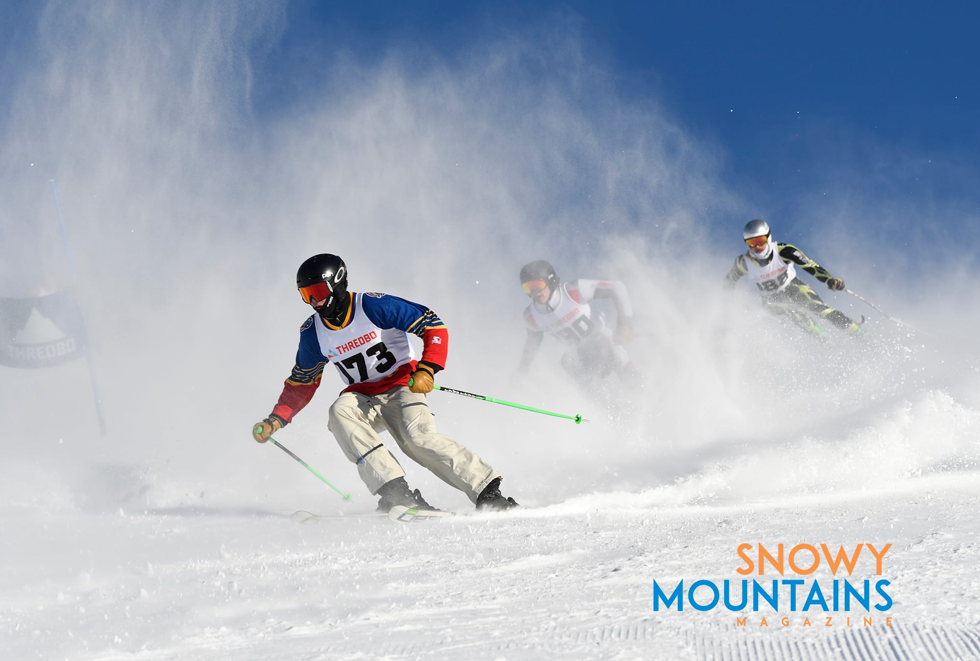 With snow flying it is best to be in front, as there are many temporary whiteouts where racers will be just aiming towards where they think the gate might be. It is best to have faith in the racers in front and you hope when you blast through the flying snow you have a clear passage ahead.