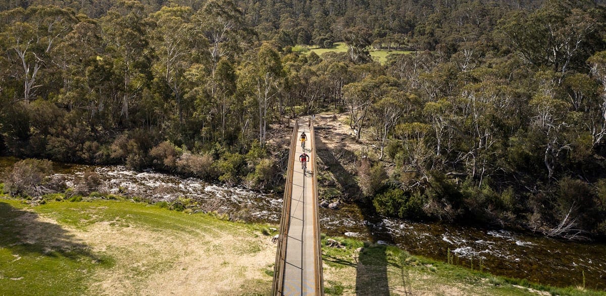 The series of five suspension bridges spanning the Thredbo River on the 9.3km section to Nagrigo Campground is spectacular. The big steel spans, Ramshead Range above and beautiful scenery along the river make this a very enjoyable ride.
